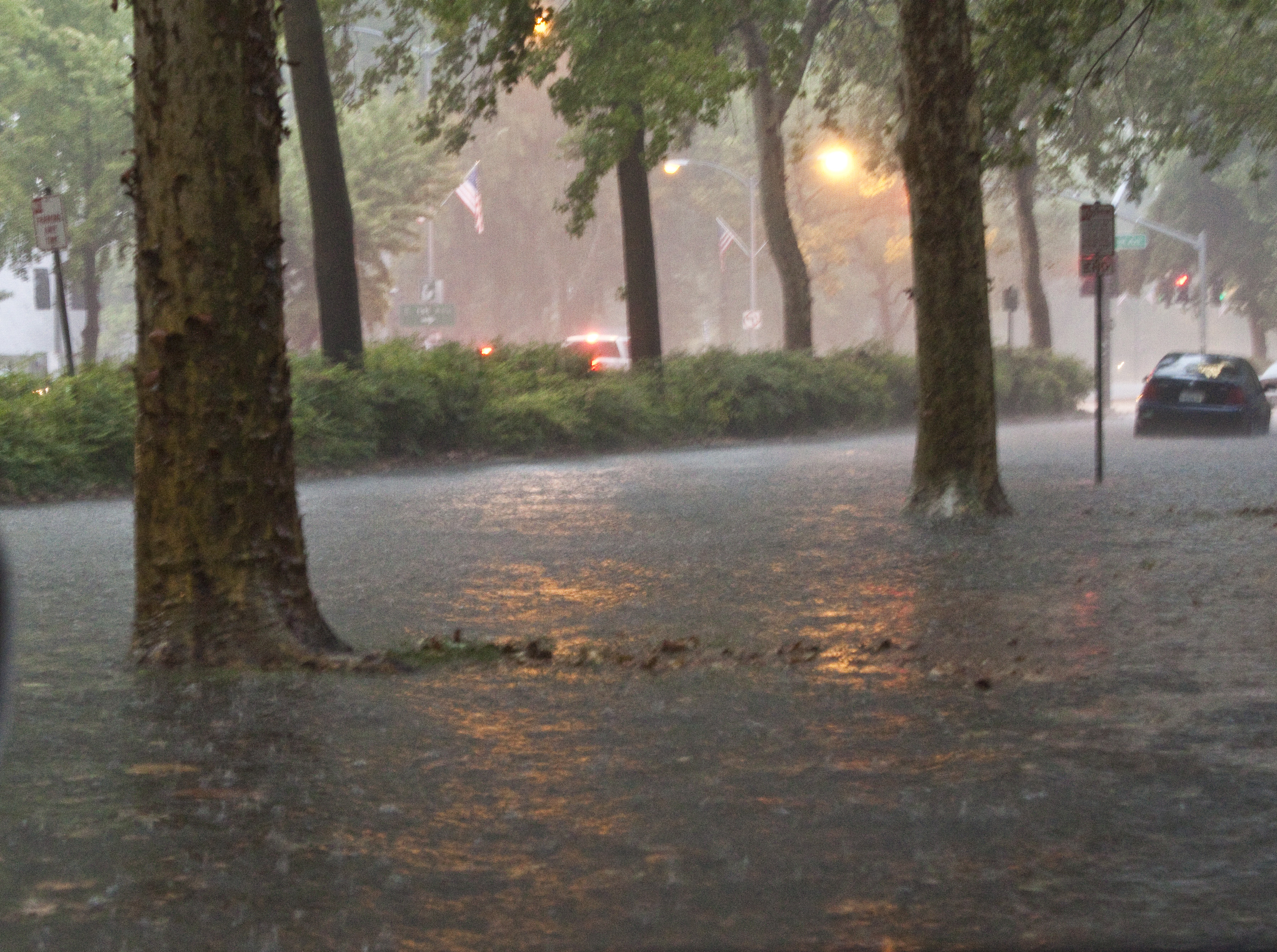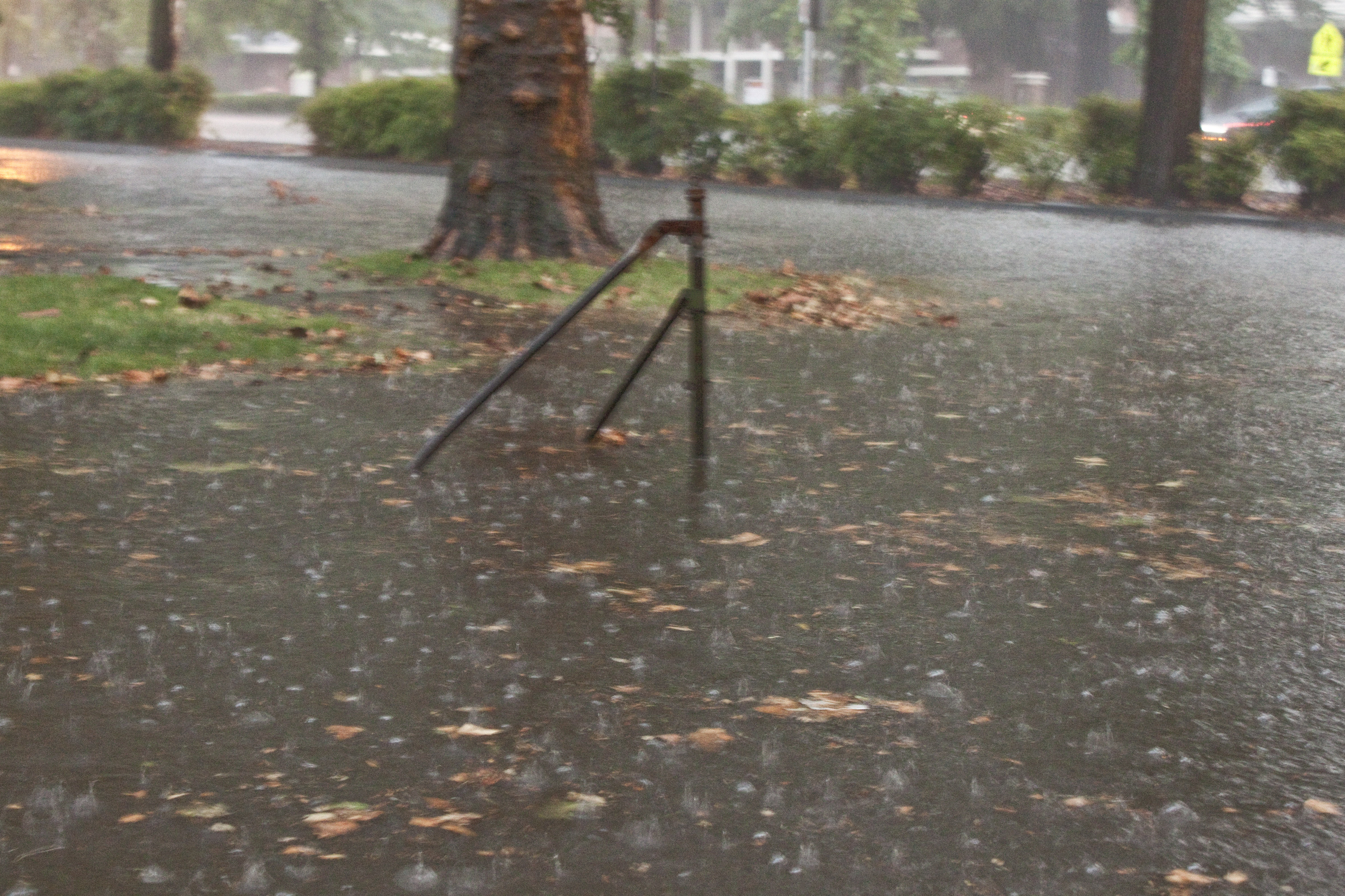 Three years ago on September 8th, I was walking downtown when it started to rain. I was on the corner of E. Sacramento Ave. and the Esplanade when the heaviest downpour hit, and, in an instant, the sidewalk and street disappeared under a river of water and I found myself wading in water up to my ankles. When the water eventually subsided, I saw that the street drains were clogged with leaf debris and trash. Though the city maintenance workers typically clean the drains out before the rainy season starts, no one expected such a huge storm so early in the season. So this year when we had our first pretty good downpour on Saturday, and what with the city workers being laid off, I remembered my earlier experience.