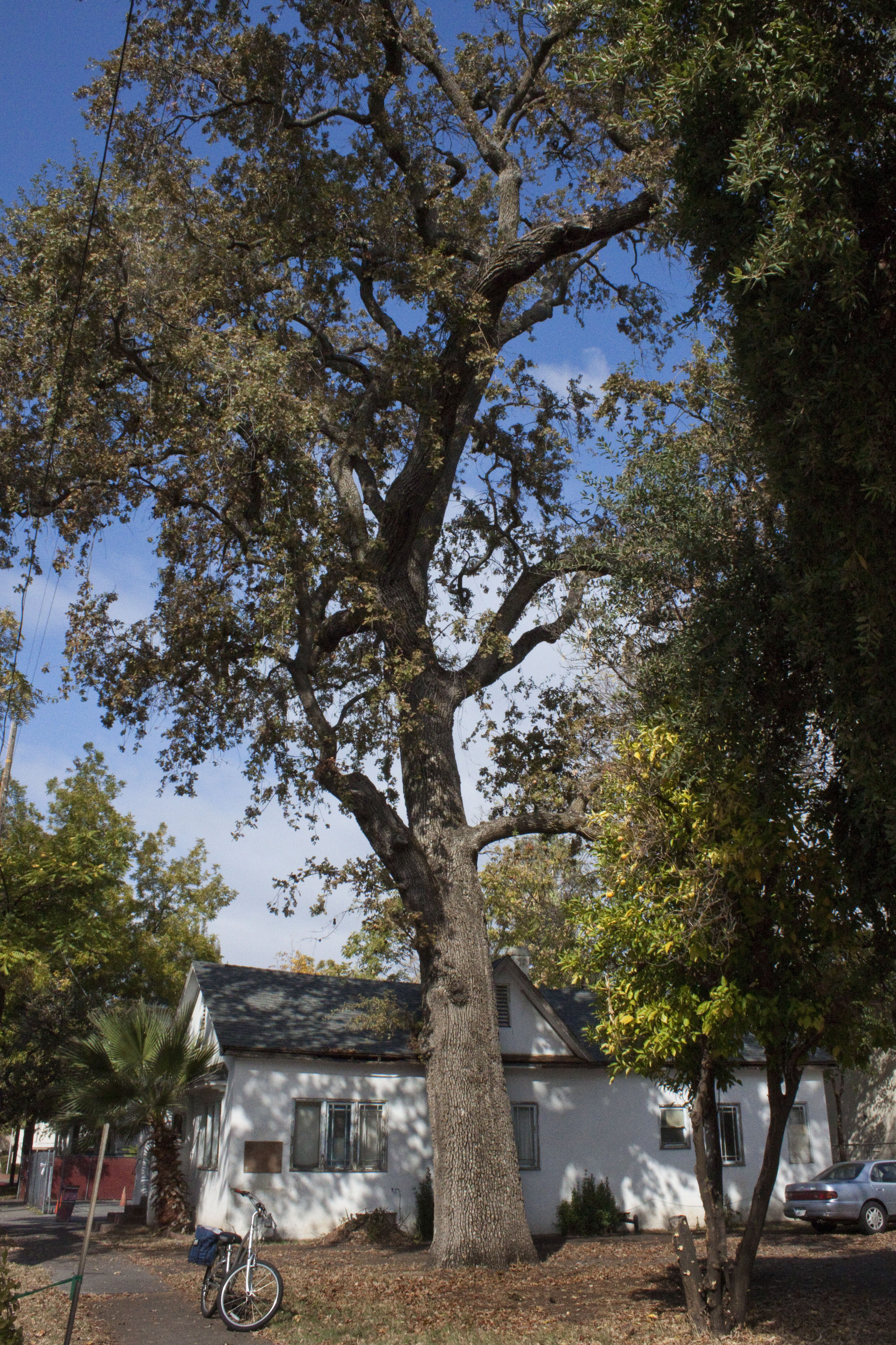 Yesterday, on the corner of Salem and 8th Sts., I witnessed the removal of an ancient Valley Oak that had occupied and shaded that corner for at least 200 years. Just hours before, it stood straight and tall, its branches reaching into the sky. But soon, one by one, its lateral branches and then its trunk were chain-sawed off until all that was left of it was nothing but a pathetic decapitated stump of its former self.