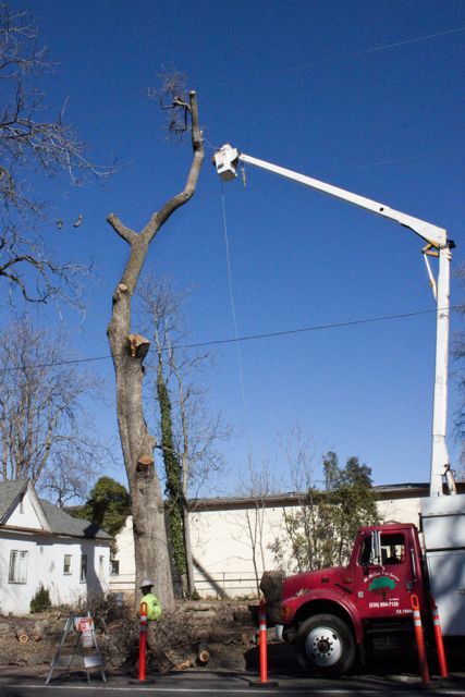Forty new trees are to be planted around town to make up for this loss. I just hope the young, little trees survive the current drought.