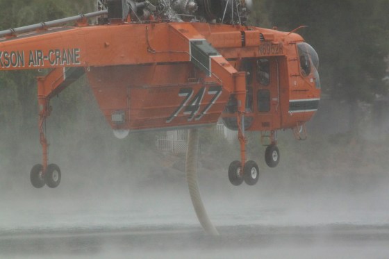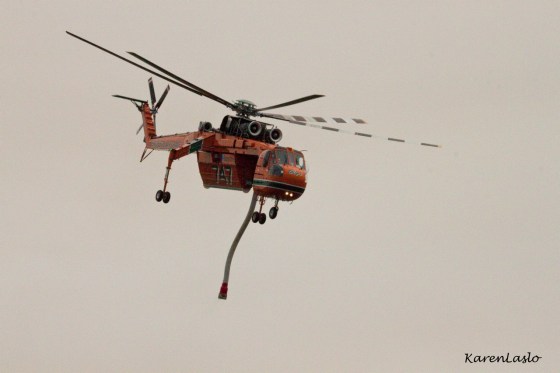 Helicopter returning to California Park lake for more water.