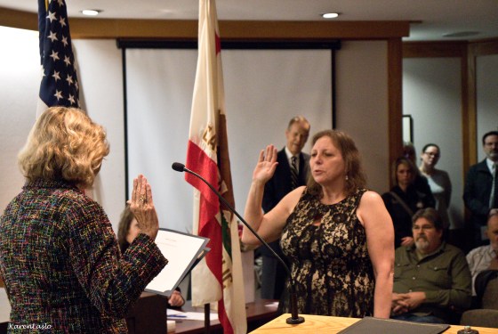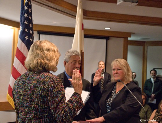 Last, but certainly not least, Tami Ritter (on right) was also elected in the November mid-term election, replacing the retiring and ever popular District 3 Supervisor, Maureen Kirk. Ritter was sworn in by her sister, Lisa Ritter from Arizona.