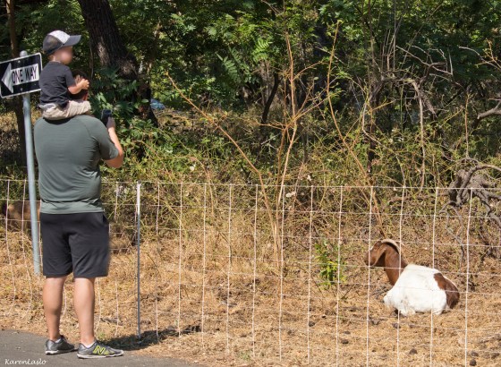 You couldn’t miss them. The enclosure was within hearing distance of the community recreation center, and within sight of the parking lot at One-Mile pool with its five lifeguard stands and its picnic tables. The herd was visible to traffic on Vallombrosa Avenue and from the front yards of houses adjacent to the park. You could smell the goats from the park trails even before sighting them.