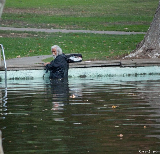 Elderly homeless man trying to clean himself in Sycamore Pool