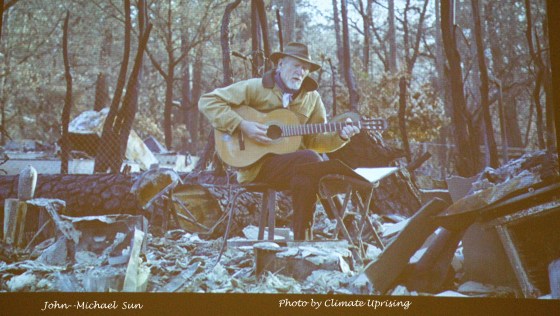 Vocalist Susan Dobra and singer/song writer, John-Michael Sun became iconic symbols of what climate change is doing to the Earth and its inhabitants when #Climate Uprising filmed John-Michael singing and playing his guitar in the middle of their burned out home.