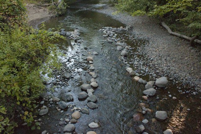 “Big” Chico Creek shrinks down to a few inches deep in Bidwell Park, as seen from the Cedar Gove bridge, May 2015