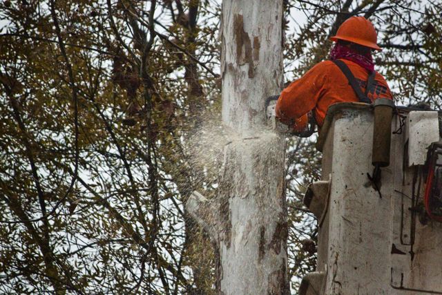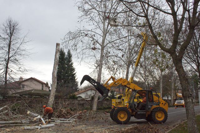 In Tom Gascoyne’s front page article in last week’s News&Review, he coined the phrase “City of Stumps.” It’s in ironic contrast to Chico’s official designation of “Tree City USA,” as bestowed on our town by the National Arbor Day Foundation. But Gascoyne’s designation does seem more appropriate these days. Yesterday, in the deepening twilight of an on-coming storm, 25 city street trees were cut down on Mission Ranch Blvd. in Chico. The neighbors complained of dropping limbs and raised sidewalks. However, several local tree advocates offered numerous ways these problems could be mitigated, to no avail. Only 3 city council members wanted to save the trees (Gruendl, Ritter and Stone). During the council discussion our-now-Mayor Sorensen stated, “Cut them down. The sooner the better.” Let’s hope this callous comment won’t be his ongoing mantra for our urban forest. (see photos below)